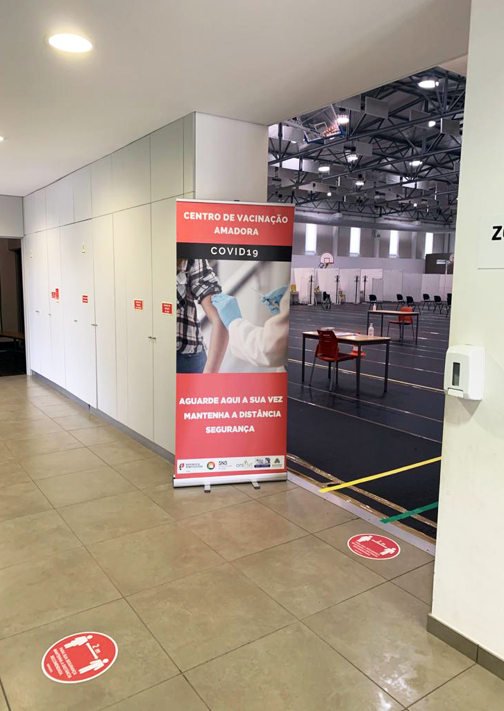 Neste caso utilizando o Pavilhão Desportivo Escolar Municipal Rita Borralho, a Camara da Amadora solicitou os nossos serviços, para identificação do espaço que seria utilizado como Centro de Vacinação da Amadora.